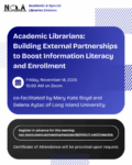 The Academic & Special Libraries Division of NCLA invite you to our Fall Roundtable event on Friday, November 14th at 10:00 am. We will feature a special Zoom discussion co-facilitated by Mary Kate Boyd and Selena Aytac of Long Island University. Please see details and Zoom link below: Academic Librarians: Building External Partnerships to Boost Information Literacy and […]