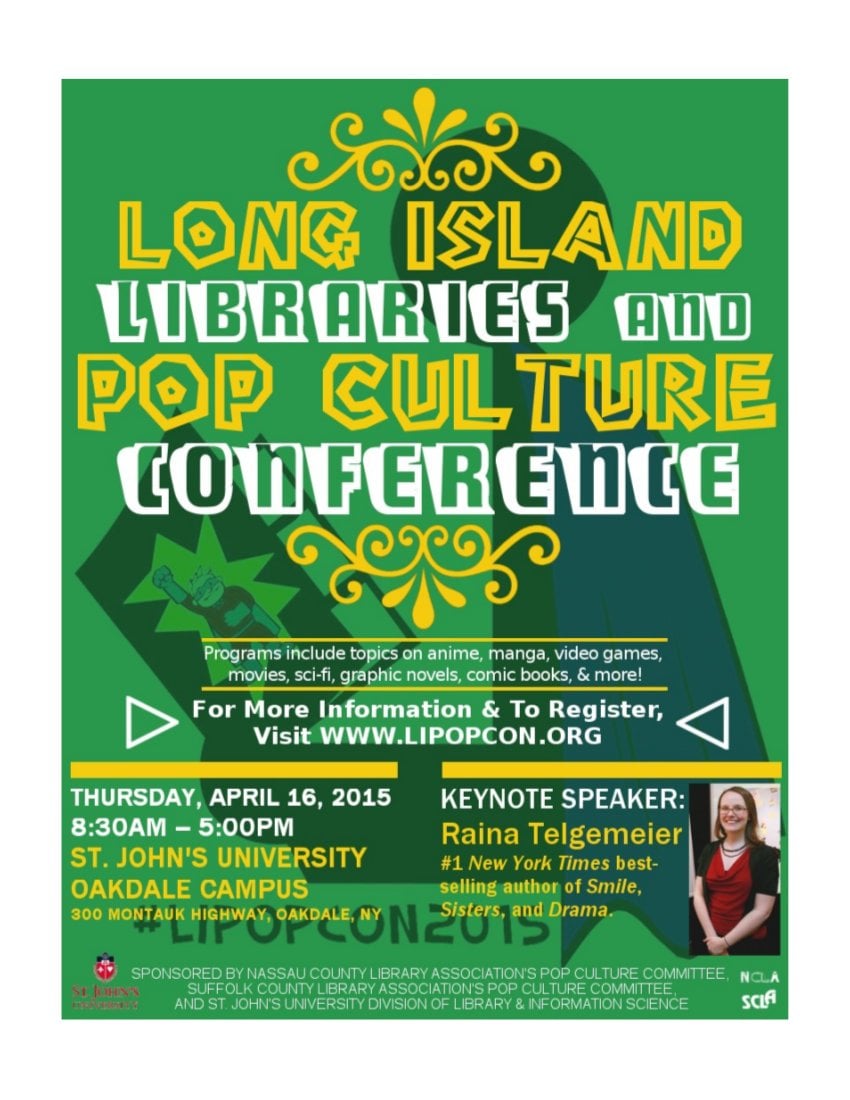 This year’s conference is sponsored by the NCLA Pop Culture Committee and St. John’s University Division of Library and Information Science.